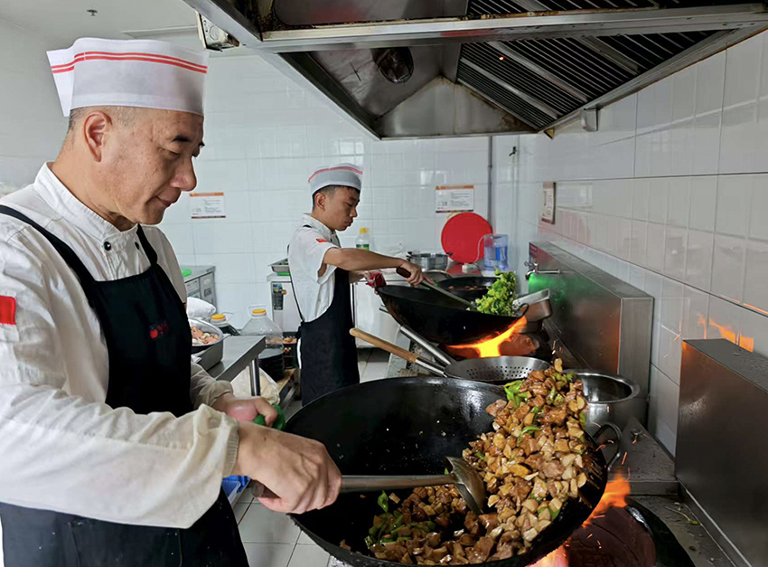 福瑞瀾德的后廚里,廚師們正緊張卻不失章法地忙碌著,全神貫注地備戰(zhàn)午餐時(shí)段,只為將新鮮美味的餐食及時(shí)呈給顧客,傳遞用心服務(wù)的溫度。